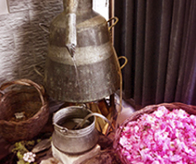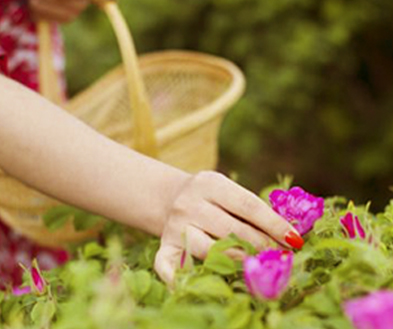 采摘后的新鲜玫瑰花瓣即刻运至工厂蒸馏