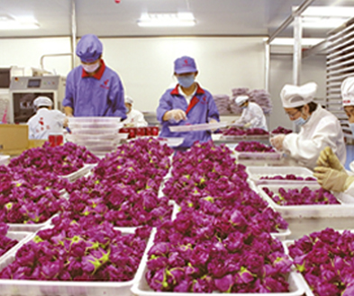 采摘后的新鲜玫瑰花瓣即刻运至工厂蒸馏