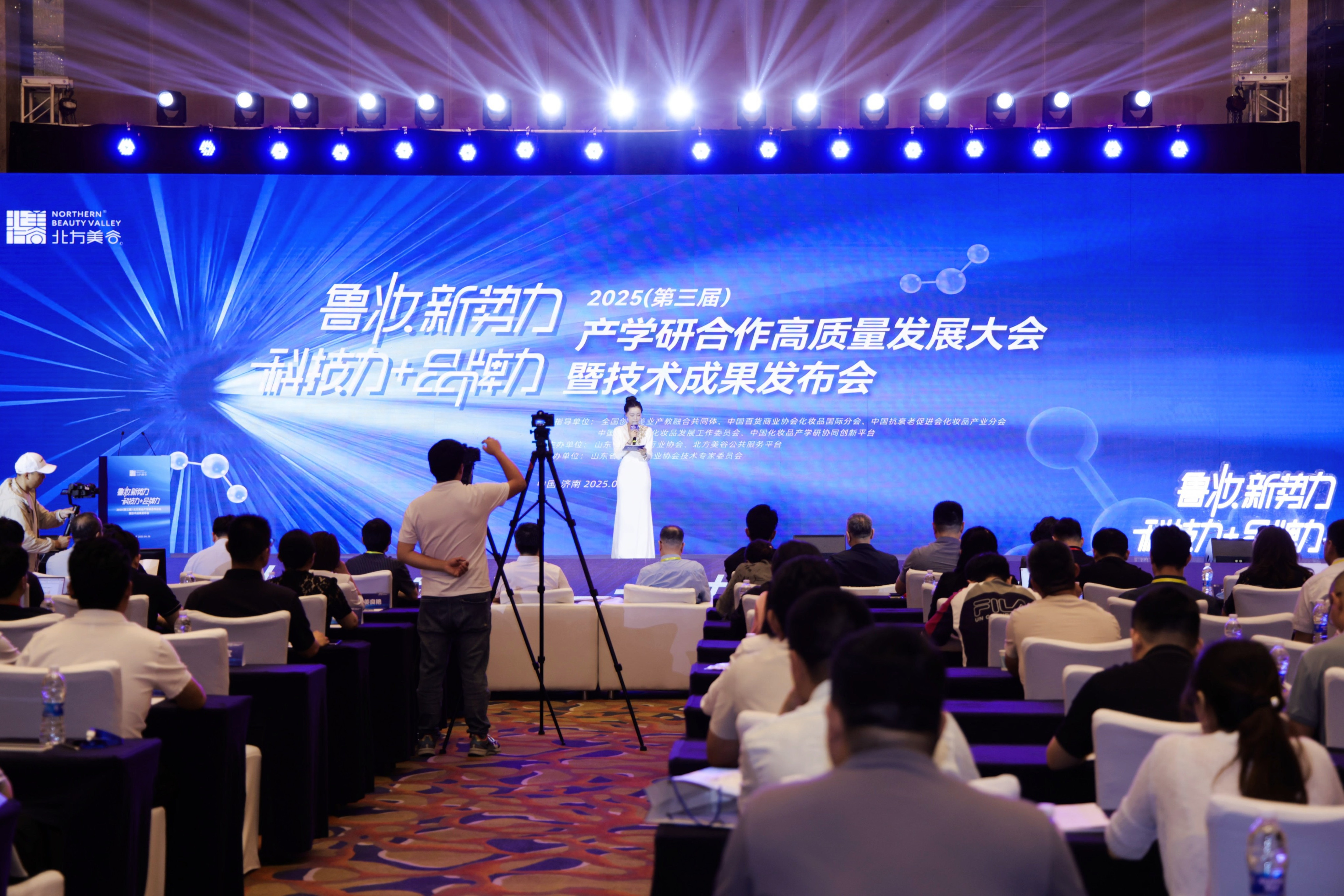 6月26日,由山东省化妆品行业协会主办的2025(第三届)北方美谷产学研合作高质量发展大会暨技术成果发布会在济南隆重举行。本次大会以“科技创新+协同发展”为核心议题,聚焦化妆品产业链条全维升级,汇聚了政府主管部门、科研机构、行业协会与知名企业代表,打造了一场高规格、高层次、高影响力的产业盛会。